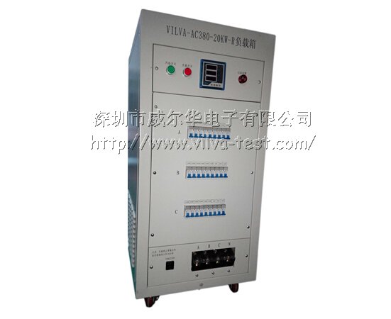 VILVA-AC380V-20KW-R 三相交流负载箱内置有纯阻性负载;可以模拟各种功率负荷,满足发电机组,UPS 电源,逆变器等交流电源满负载检测需要,是生产车间、实验室、安装调试、科研开发必备的检测工具。