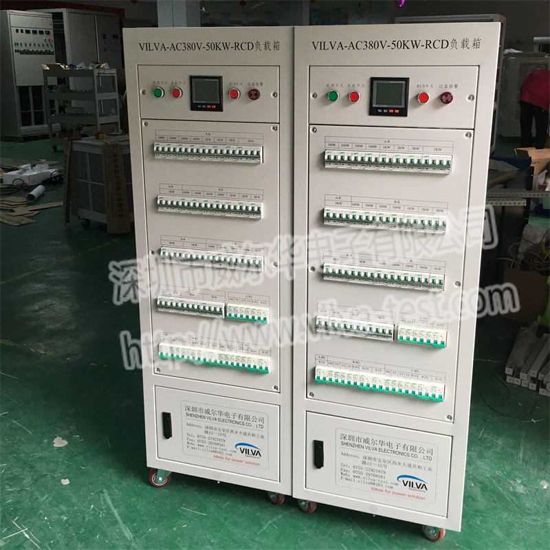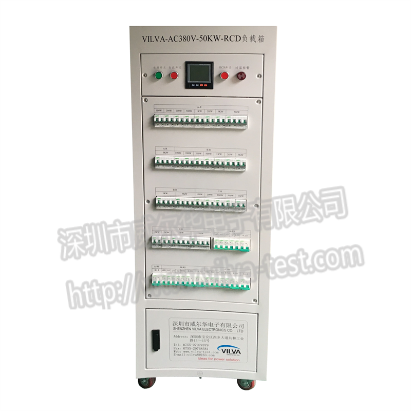 VILVA-AC380V-50KW-RCD交流负载箱内置有阻性负载、感性负载、容性负载;三相负载功率可不同步控制;功率输入采用分段式组合控制,可以任意组合模拟各种功率负荷,满足UPS,逆变器,发电机组等交流电源满负载检测需要,是生产车间、实验室、安装调试、科研开发必备的检测工具。