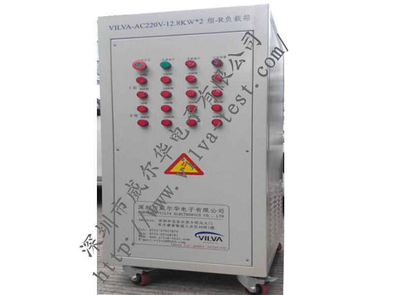 VILVA-AC220V-12.8KW*2组-R交流负载箱内置有纯阻性负载;可以模拟各种功率负荷,满足发电机组,UPS电源,逆变器等交流电源满负载检测需要,是生产车间、实验室、安装调试、科研开发必备的检测工具。